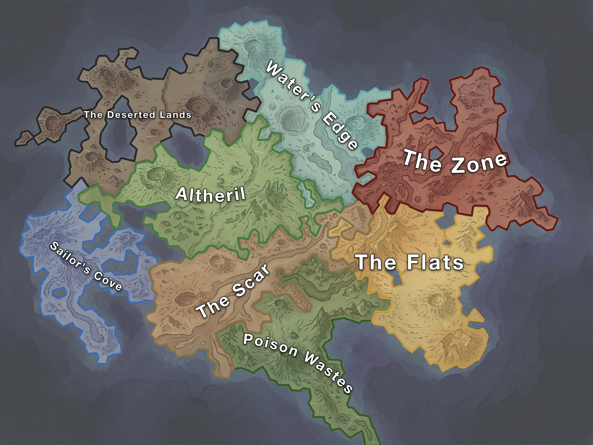 Instantly auto-map procedurally generated zones to distinct factions, or draw custom territory borders freehand directly on the map. Custom borders automatically snap to adjacent edges for pixel-perfect alignment — no gaps, no overlaps. Name and color each faction or region.